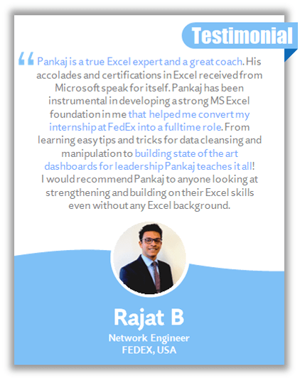 Pankaj K Pandey, an accomplished Microsoft Excel Most Valuable Professional (MVP) award winner by Satya Nadella, Microsoft Certified Trainer, and Certified Excel Expert with a wealth of experience in Performance Improvement and efficiency through the deployment of Automation, data presentation, and data visualization techniques. Over the years, he has imparted training to over 20,000 individuals and helped more than 80 companies to enhance their resource knowledge in Excel performance.